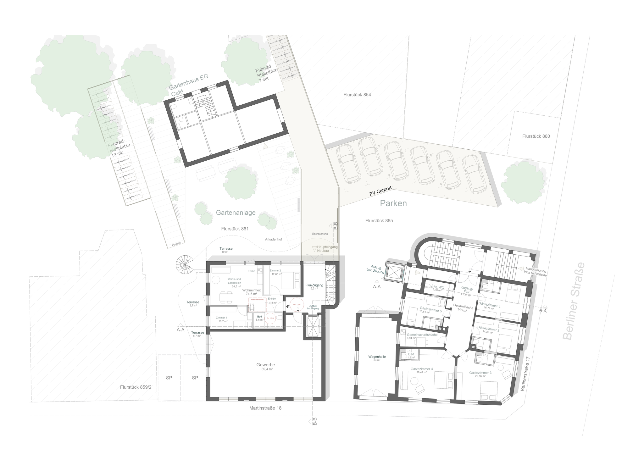 Die denkmalgeschützte Villa, auch "Villa Schmückle" genannt, befindet sich im Herzen Esslingens an der Berliner Straße /Ecke Martinstraße. Die Villa im Jugendstil aus dem Jahr 1897 soll nun saniert werden, um den Bau mit einer neuen Wohnnutzung wiederzubeleben, das Zusammenleben in der Stadt zu bereichern und gleichzeitig Modernität und historischen Charme der Villa in Einklang bringen.