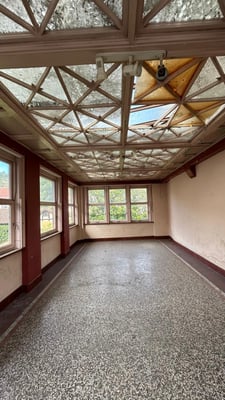 Die für einen Altbau typischen hohen Decken verleihen den Räumen eine bestimmte Großzügigkeit und geräumige Atmosphäre. Einen Bezug zum Außenraum und ein weiteres Angebot zum Aufenthalt, bieten der Balkon an der Nord-Ost-Ecke sowie der Wintergarten an der westlichen Fassade.