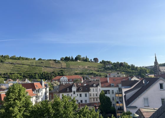 Um allen Bewohnern des Hauses den malerischen Ausblick auf die Esslinger Burg und die umliegenden Weinberge zu gewähren, ist die großflächige Dachterrasse für diese frei zugänglich und lädt ein gemeinsam Zeit zu genießen.